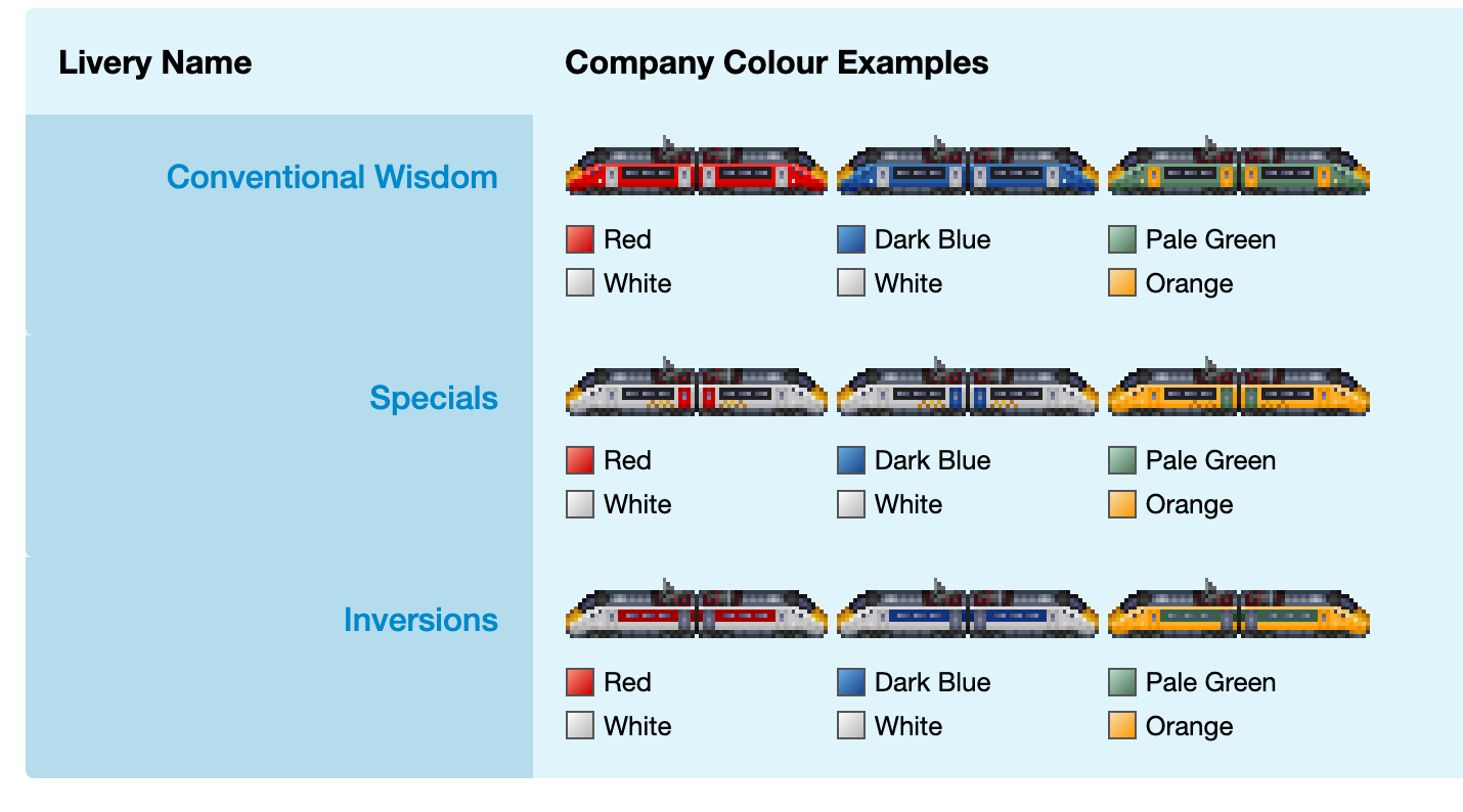 18:51:40 <andythenorth> none of these conform to existing liveries well