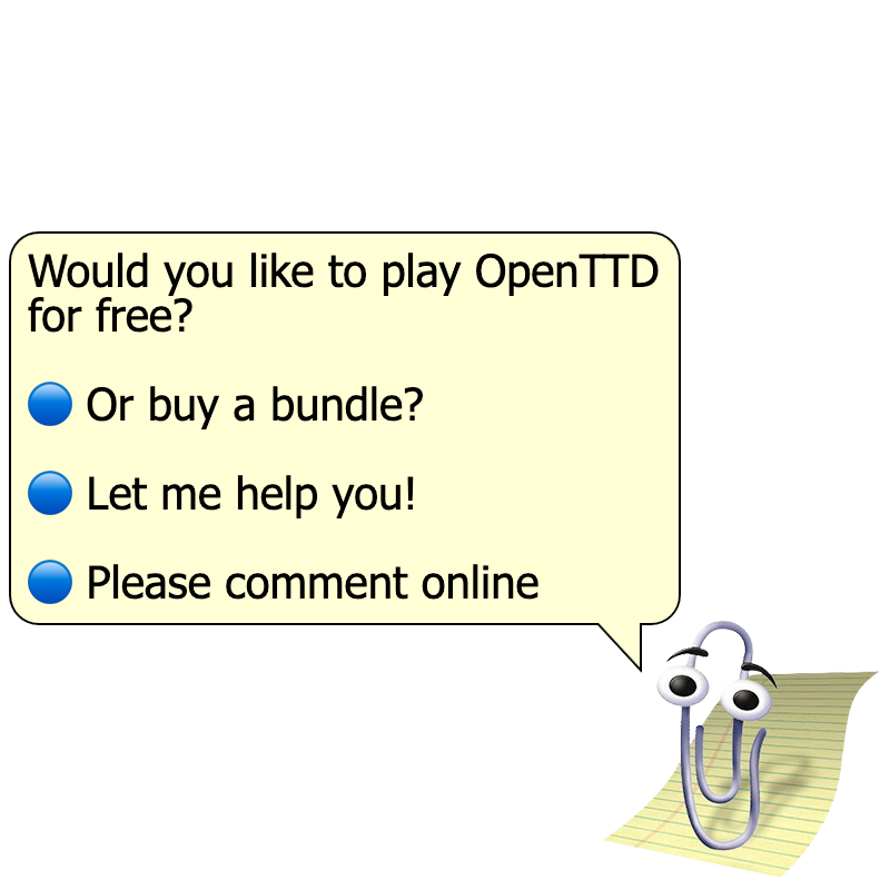 08:03:28 <rchipp> * OpenTTD should not be listed as a mod requiring original TTD on Steam and GoG. This only serves to confuse and outrage the public.